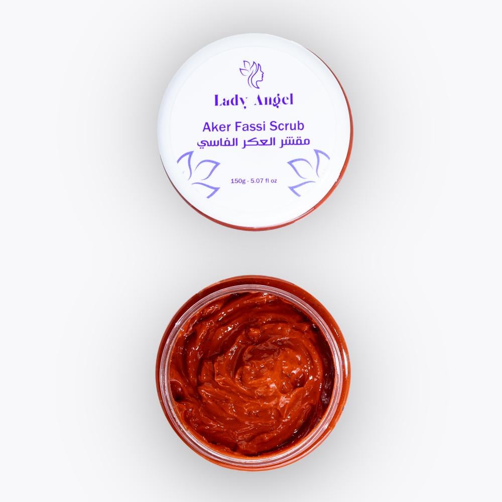 مقشر طبيعي غني بالعكر الفاسي و حبيبات الارجان ، يزيل خلايا الجلد الميتة، يعيد للبشرة نعومتها الطبيعية ويمنحها إشراقة صحية.
